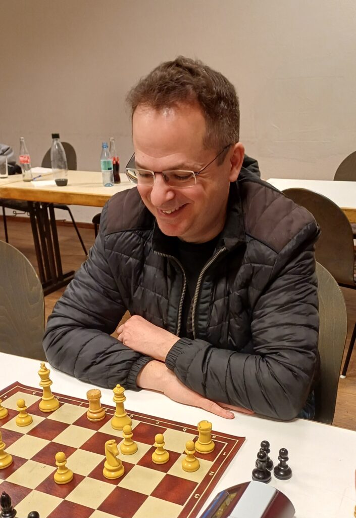 Mit 13 Teilnehmern war der dritte Spieltag des FJK-Blitz-Grandprix sehr gut besucht, und Favorit Uwe Bremke stellte erneut seine Stärke im Blitzschach unter Beweis: mit 11,5 Punkten aus 12 Partien sicherte er sich seinen dritten Tagessieg in der laufenden Saison und stellte sich gutgelaunt dem Fotografen. Ein starkes Turnier spielte auch Simon Schröder, der mit 9,5 Punkten den zweiten Platz belegte und den Jugendpreis gewann. Den dritten Platz teilten sich mit jeweils 8 Punkten gleich vier Spieler, nämlich Klaus Vatter, Hendrik Hündlings, Viktor Dongash und Neueinsteiger Ingo Gellendin. Den Ratingpreis „DWZ U 1500“ gewann Rauf Seyid, der mit 7 Punkten den siebten Platz belegte; es folgten Nicolas Gadhöfer, Hermann Greving (je 4,5 Punkte), Richard Müller (4), Gunnar Herppich (3,5), Benedikt Ungerland (1,5) und Nachwuchstalent Lukas Kuithan.