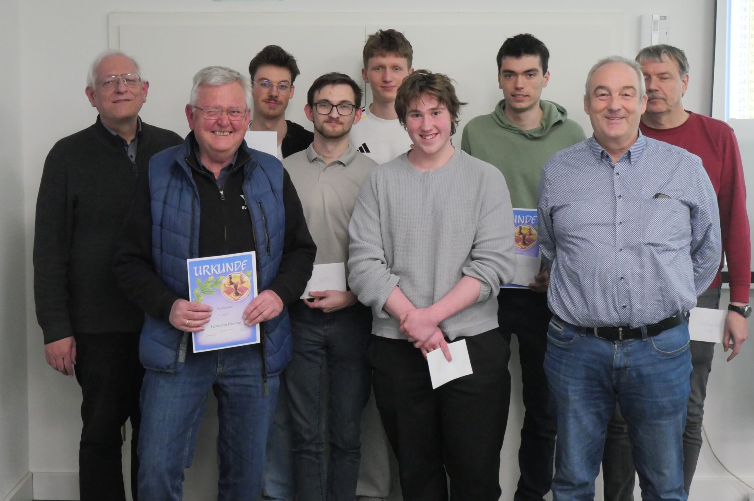 Die Preisträger stellten sich nach der Siegerehrung gut gelaunt dem Fotografen (von links: Manfred Lenhardt, Hermann Greving, Jasper Bohle, Michael Stirnberg, Mykhaylo Makoveienko, Joshua Gosch, Hendrik Hündlings, Arndt von Itter, Ingo Gellendin).