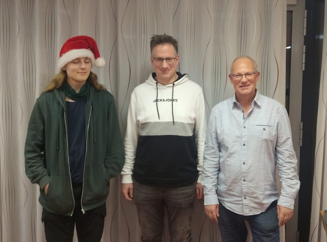 Ein spannendes Turnier lieferten sich die 13 Teilnehmer des Weihnachts-Schnellschachturniers, und nach fünf Runden im Schweizer System lagen zwei Spieler punktgleich mit vier Punkten vorn. Die bessere Feinwertung hatte Stefan Dieckerhoff (SK Dülmen), der damit auf dem 1. Platz landete. Zweiter wurde Hauke Schiemann, der zwar als einziger ungeschlagen blieb, sich aber zwei Remispartien leistete, vor Guido Hügel, Silas Schlüter, Klaus Vatter (je 3,5 Punkte) und acht weiteren Spielern. Im Bild die drei Erstplatzierten: