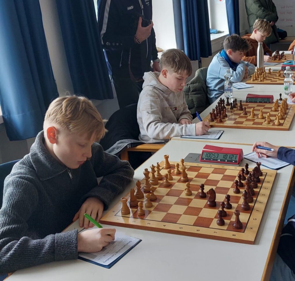 Die U-14-Jugendmannschaft konnte am letzten Doppelspieltag der U-14-Verbandsklasse Süd überraschend ihren ersten Mannschaftspunkt einfahren, und das ausgerechnet gegen den Meisterschaftsanwärter Rhedaer SV, der an den ersten beiden Brettern wieder echte DWZ-Schwergewichte (1800 plus) aufgestellt hatte.