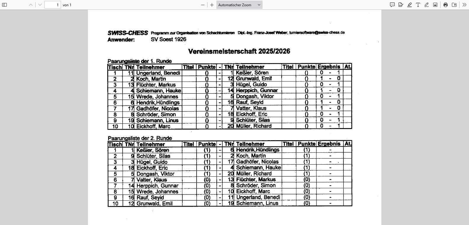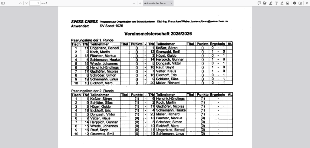Vereinsmeisterschaft 2.RUNDE Die 1. Runde ist beendet, die 2. Runde findet ab dem 5. Dezember (bis spätestens 23. Januar) statt